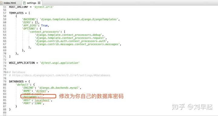 - 覆盖完成之后需要下载里面的settings.py文件,修改里面的数据库密码为你之前配置数据库设置的密码。然后上传覆盖掉原来的。