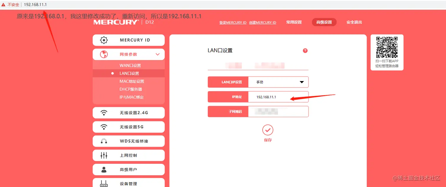 1、默认网关192.168.0.1 修改成 192.168.11.1