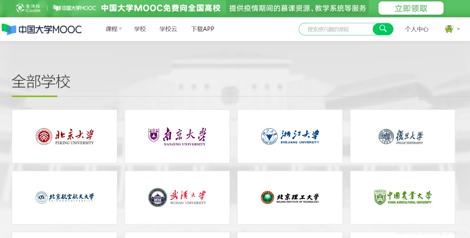 这里汇聚了全国各个高校的课程,你可以系统性地学习某门课程,也可以看看清华北大都是学习啥课程,哈哈哈。。。