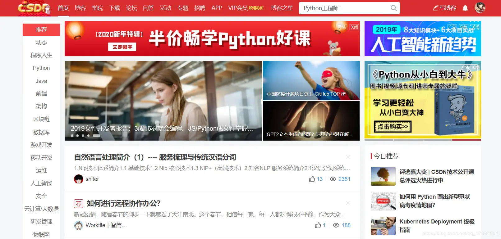 我第一个推荐的就是CSDN,说实话确实不错,我经常代码遇到问题时都是在CSDN上找解决办法的;