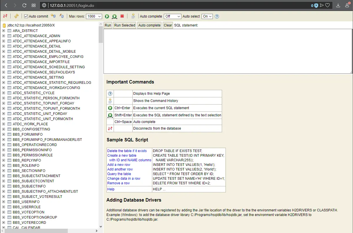 20051为系统默认的H2数据库访问端口,管理员可以在node_127.0.0.1.json里对端口进行配置