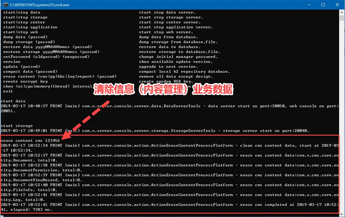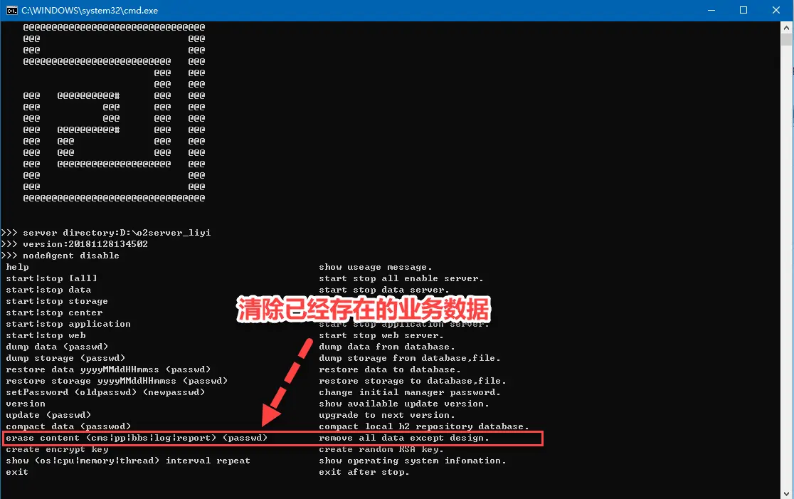 当O2OA业务开发完成时,上线前通常需要清除已经存在的测试数据,或者演示数据。O2OA提供命令 对指定模块的业务数据进行清除。