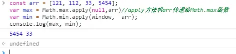 apply改变this的指向与call不一样的是传递的参数是一个数组,然后输出的时候是一个字符串,利用这个特点我们可以数组的最大值最小值。