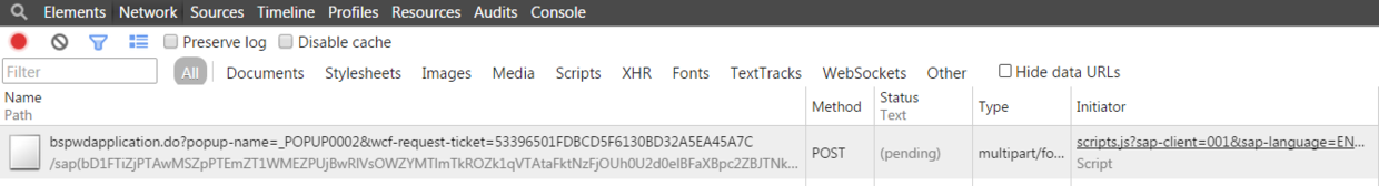 从Chrome network tab能观察到,UI向Application server发送了一个http post: