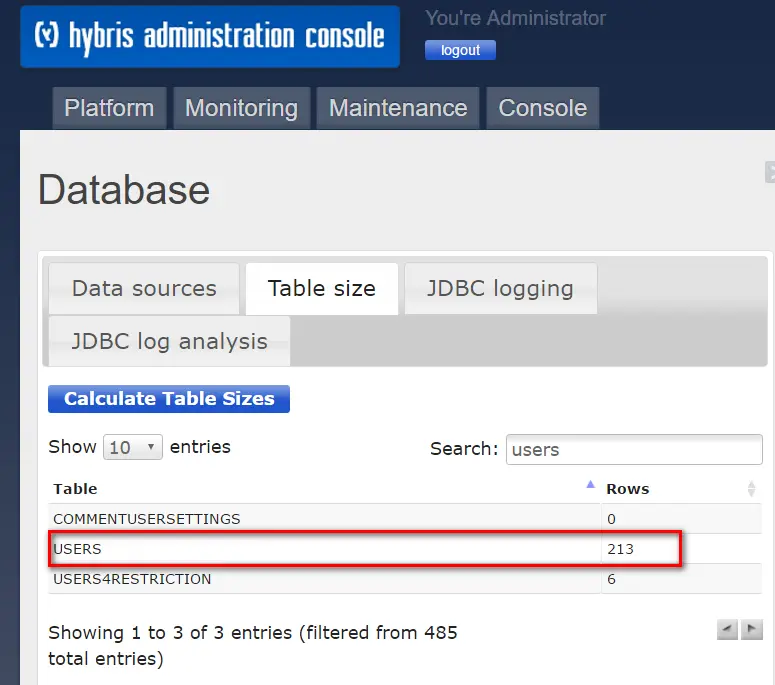 Admin console里可以查看每个DB table有多少条entry: