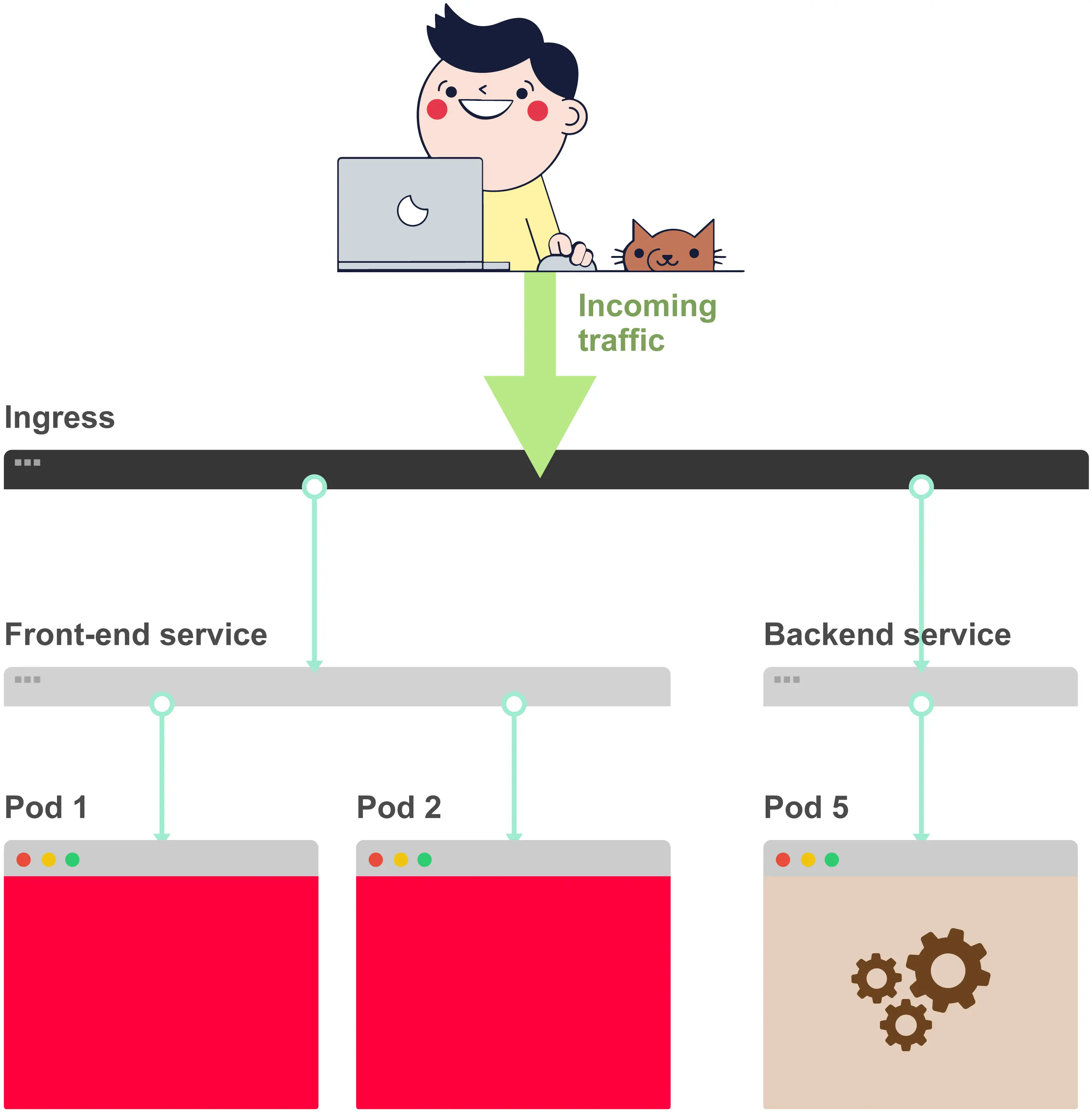 你可以通过直接连接到Ingress Pod将基础设施问题与Ingress隔离开来。