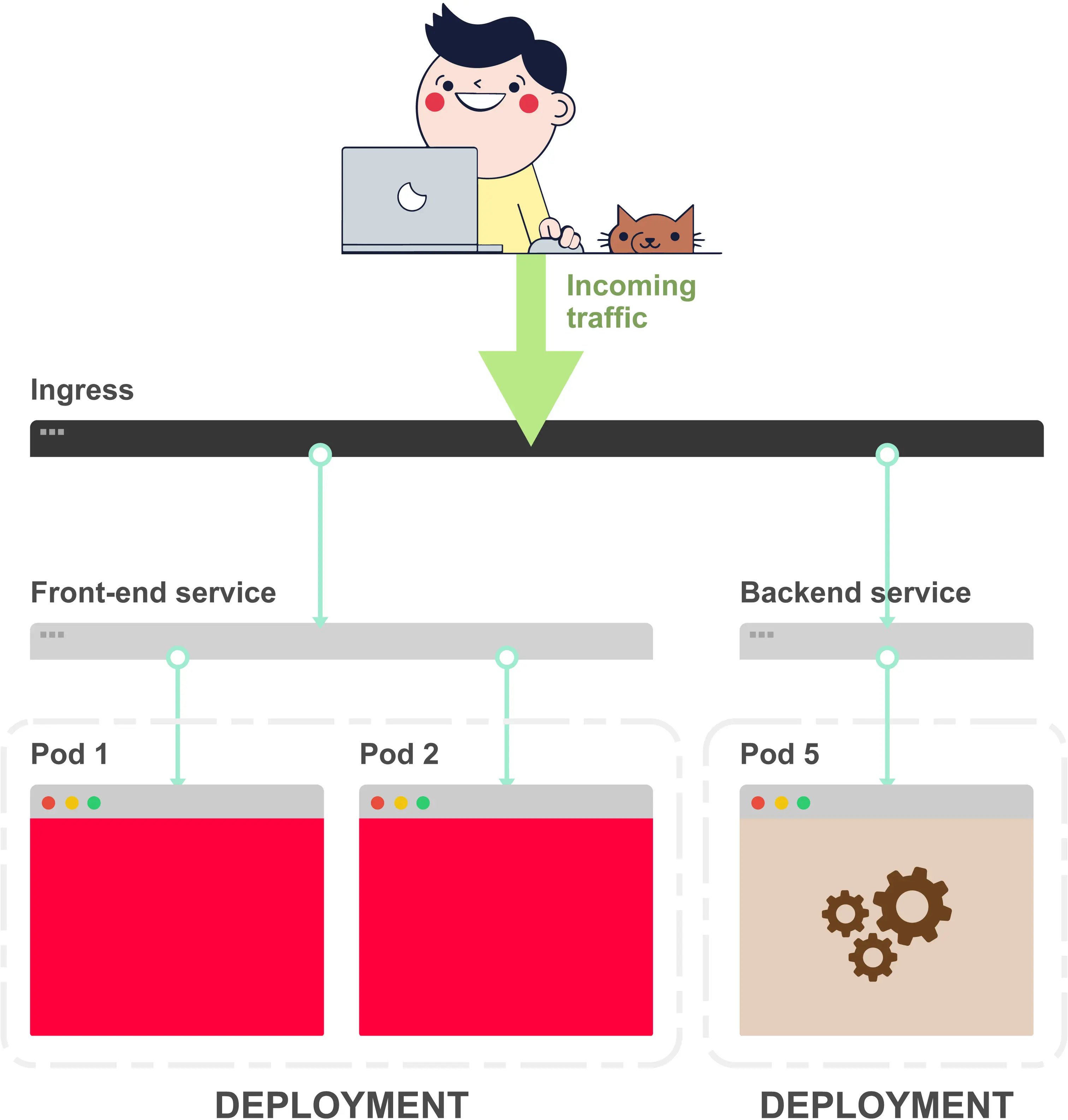 在Kubernetes中,你的应用程序通过两层负载均衡器暴露:内部和外部。