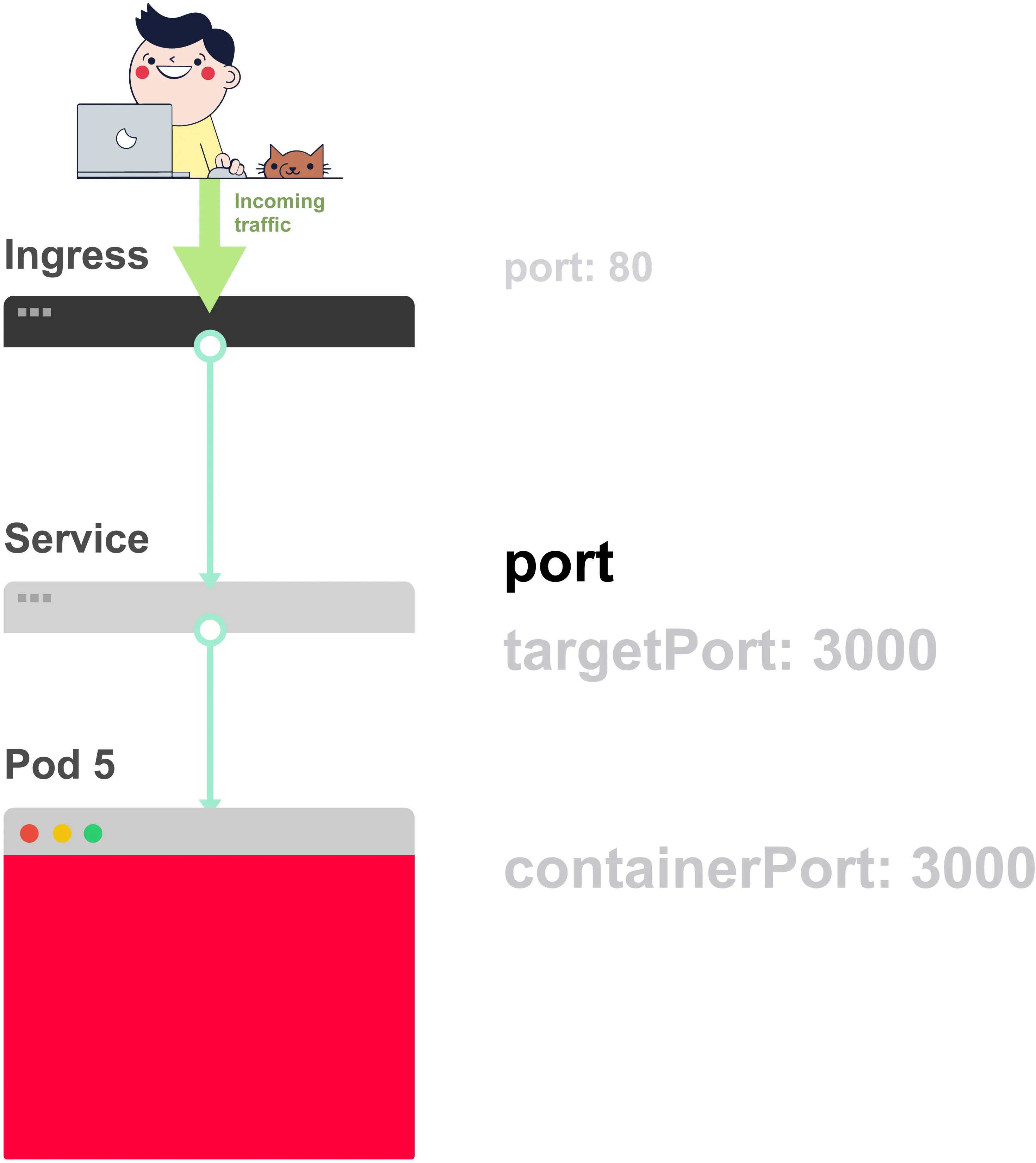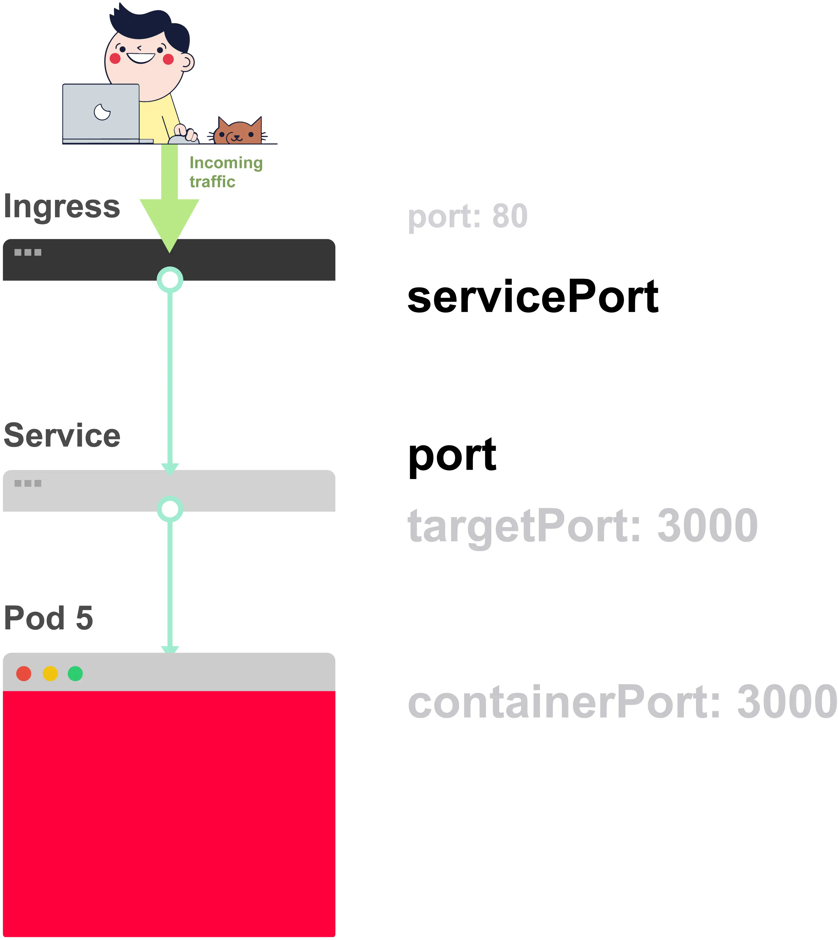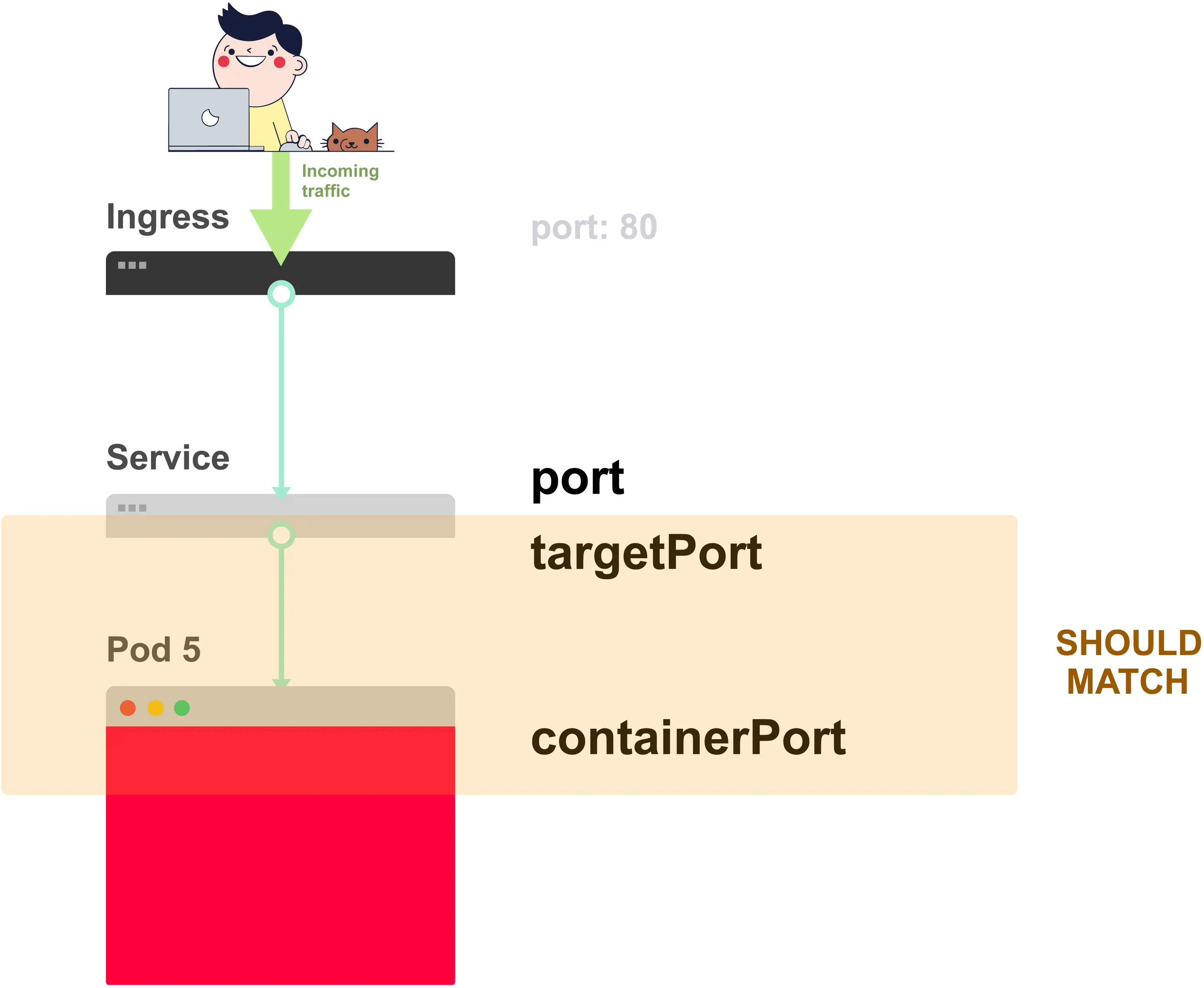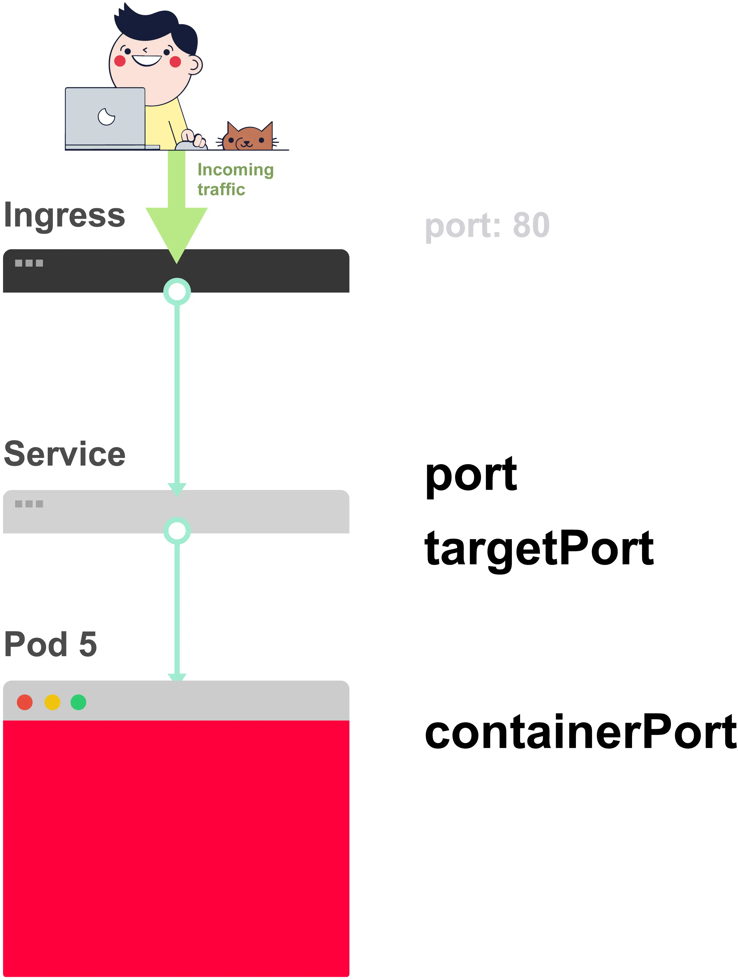 当你创建一个Service时,你能够定义一个port和一个targetPort。但你应该将哪一个连接到容器呢?