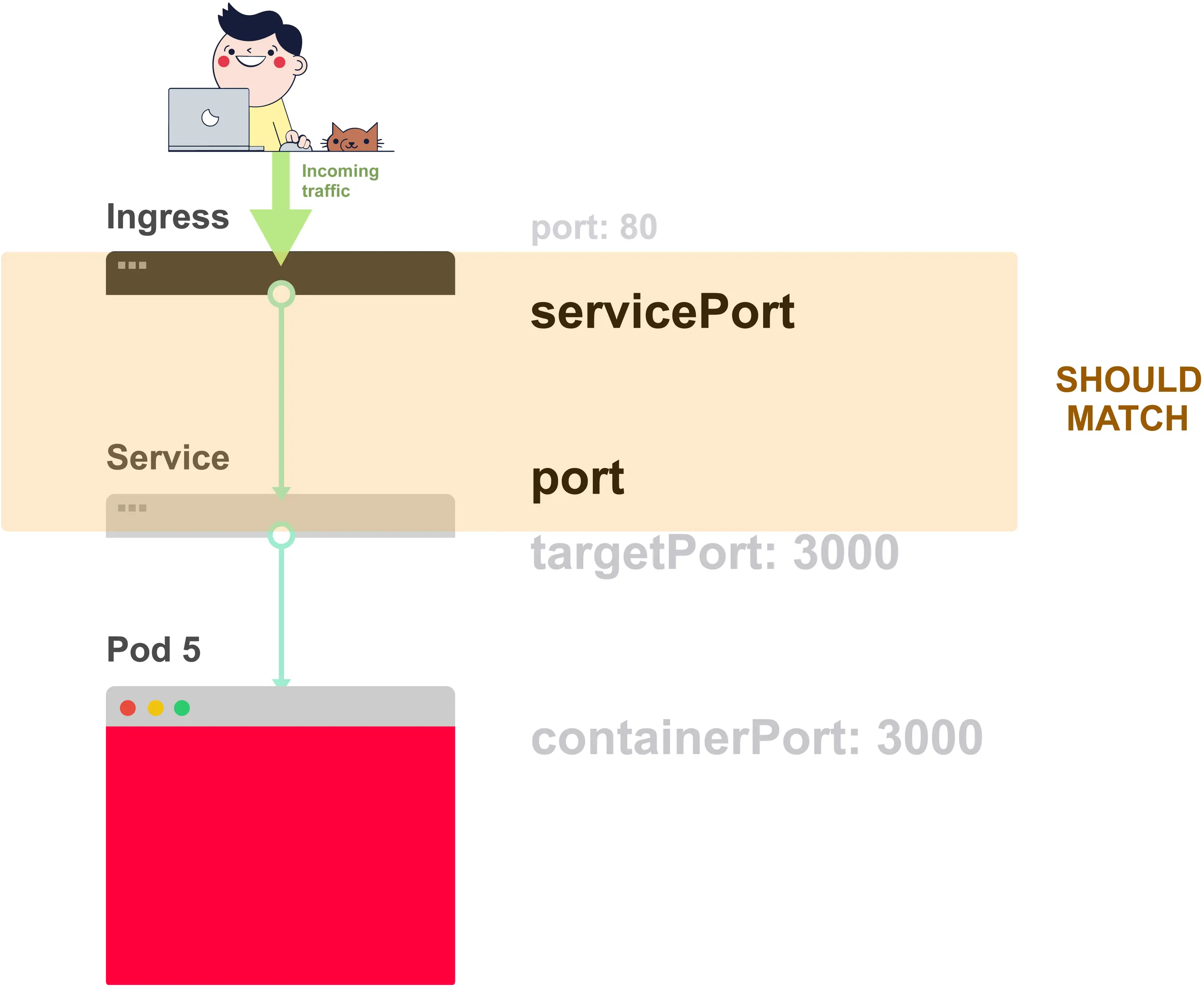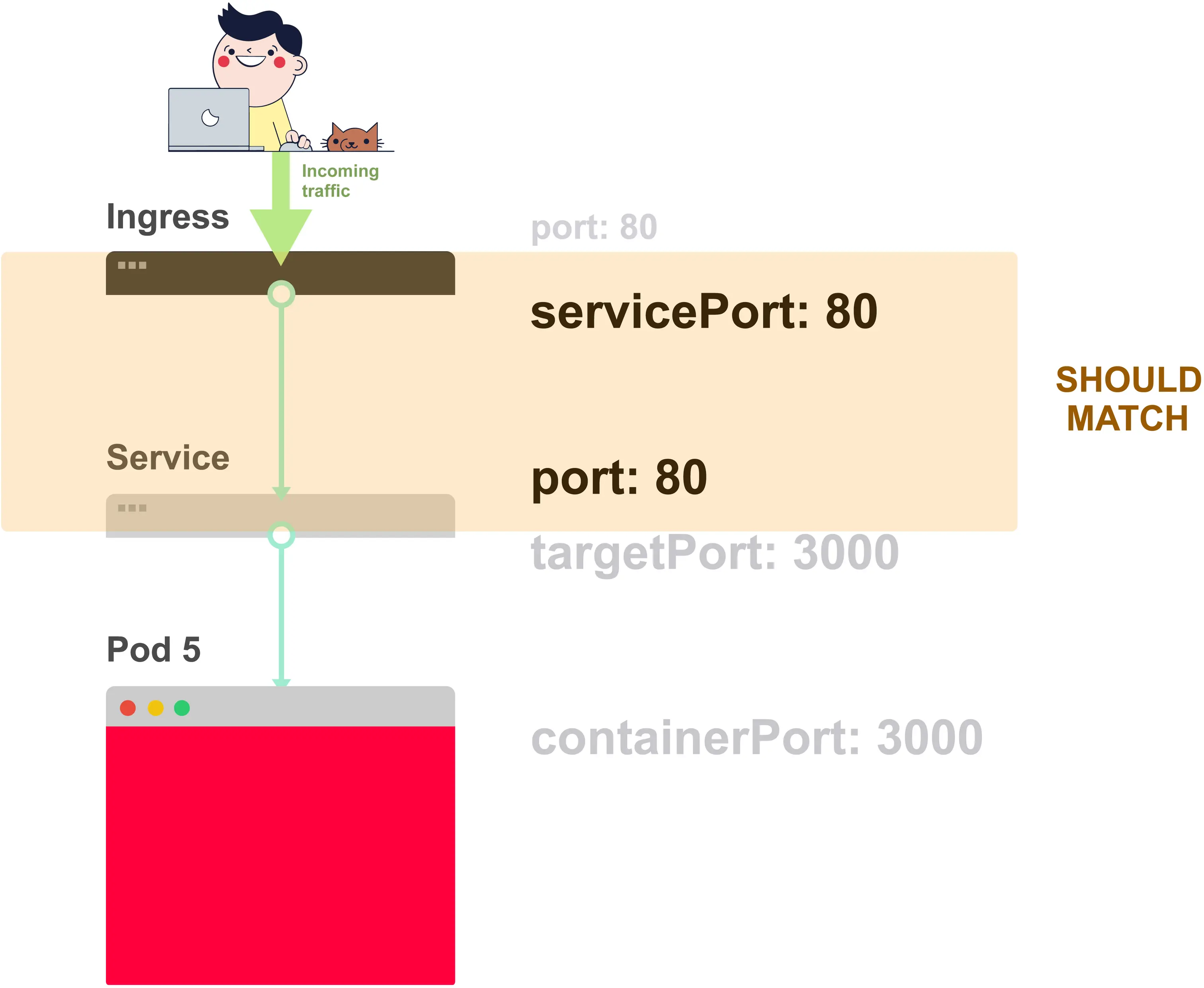 在Ingress和Service中应该匹配两件事: