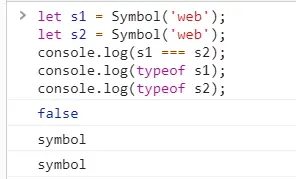 由图可知:Symbol()函数接收的参数相同,其变量的值也不同,s1和s2是Symbol类型的变量,因为变量的值不同,所以打印的结果为false。使用typeof来获取相应的类型,所以打印的结果都为symbol。