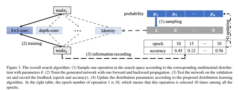 1、 propose a Multinomial Distribution Learning for extremely effective NAS, which considers the search space as a joint multinomial distribution. 2、Propose a performance ranking hypothesis, which can be incorporated into the existing NAS algorithms to speed up its search. 3、The proposed method achieves remarkable search efficiency, e.g., 2.55% test error on CIFAR-10 in 4 hours with 1 GTX1080Ti , which is attributed to using our distribution learning that is entirely different from RL-based methods and differentiable methods.