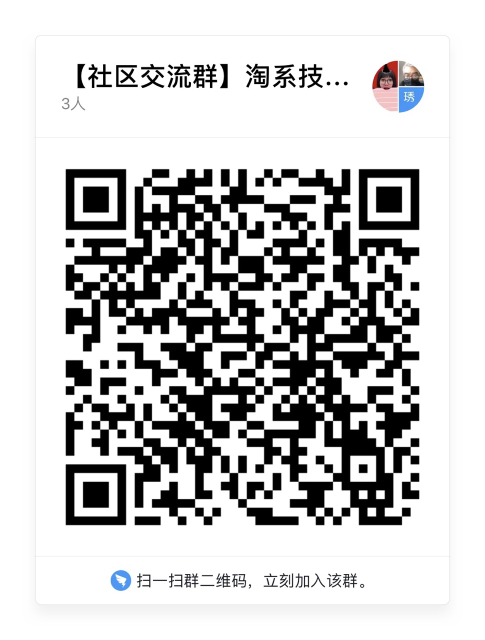 社区交流群:淘系技术部技术大咖在线交流,欢迎加入<br