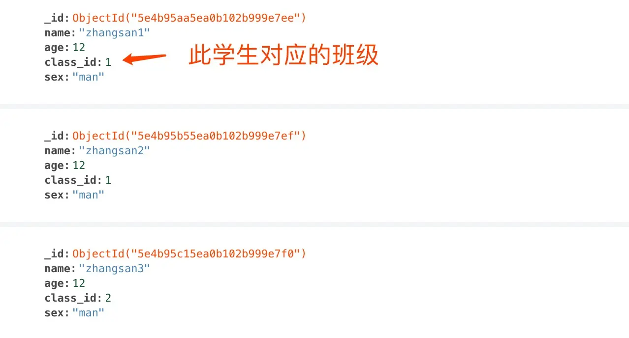 foreignField: 'class_id', // 关联表中字段为 class_id