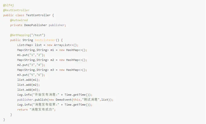 还需要有一个消息事件发布者,将这个消息事件给发布出去