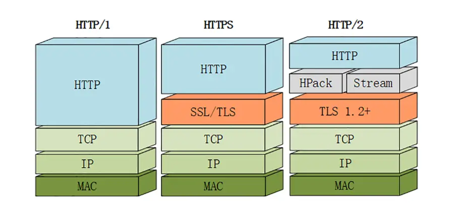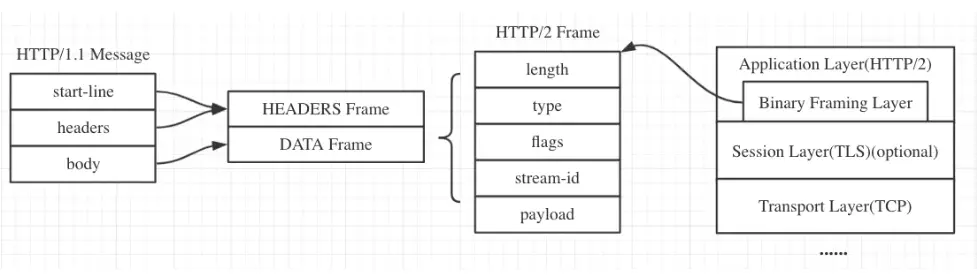 - 出于兼容的考虑,HTTP/2 延续了 HTTP/1 的“明文”特点,可以像以前一样使用明文传输数据,不强制使用加密通信,不过格式还是二进制,只是不需要解密。