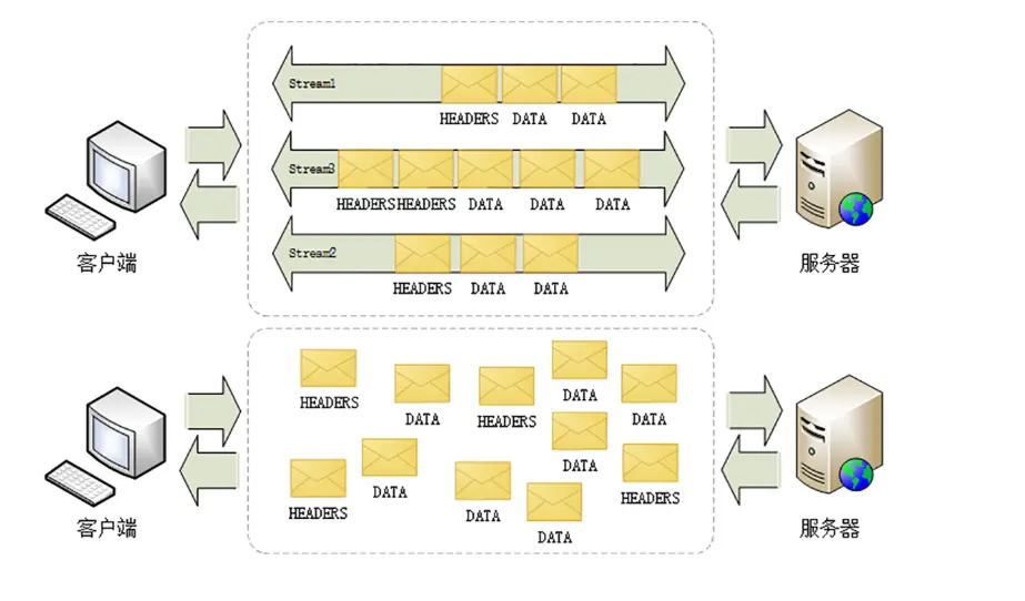 - 流的概念实现了单连接上多请求 - 响应并行,解决了线头阻塞的问题,减少了 TCP 连接数量和 TCP 连接慢启动造成的问题