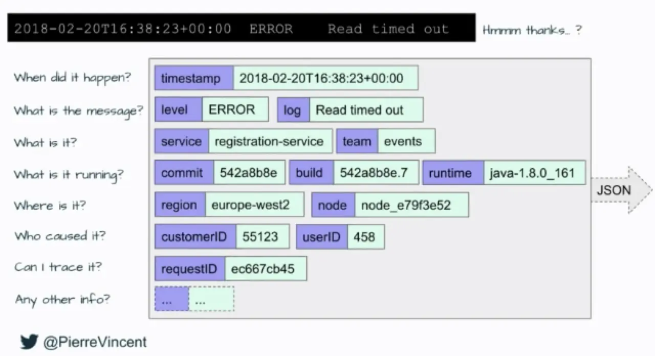 metric的scope可以是从底层到更上层的: System metrics(CPU, memory) -> Application metrics(Error rates) -> Business metrics metric收集: Metrics --> Metrics collector && Metrics query engine <-- Dashboard, Alert 开源的方案可以参照Prometheus & Grafana 这里有两点需要说明一下:
