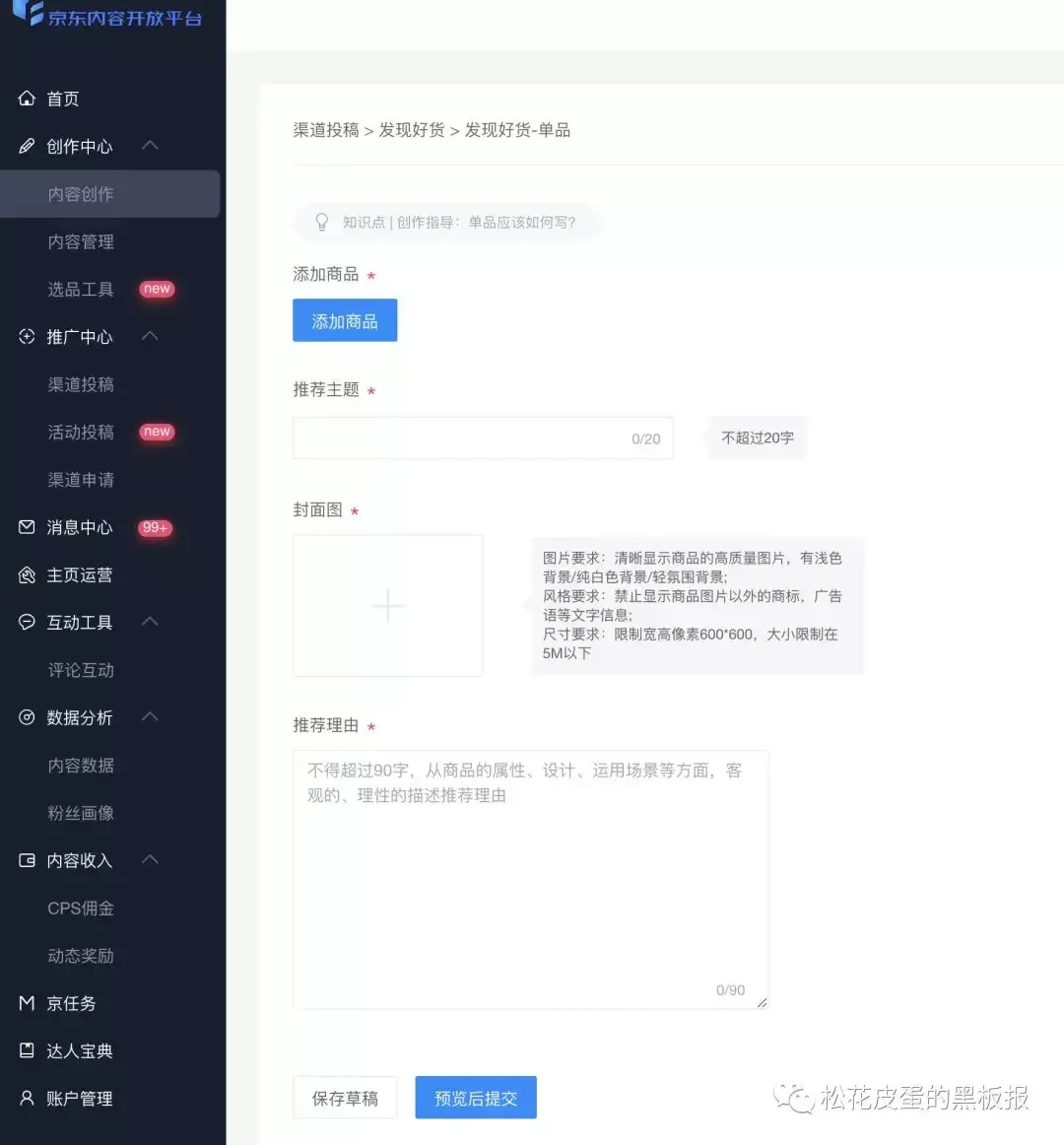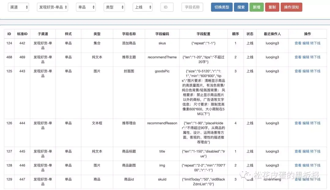 比如,京东的达人平台,支持渠道、样式、类型、字段等动态调整。前端根据规则渲染页面和拼装请求参数,服务端根据规则动态校验和保存。
