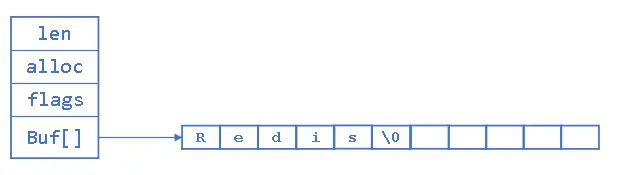 //再为null项再加上一个字节。 具体实现,参考源码(sds.c:204)。