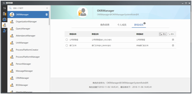 | OKRManager | 目标管理系统管理员 | 可以在目标和工作管理系统中进行各类配置管理 |