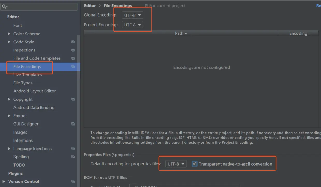 Transparent native-to-ascii conversion 主要用于转换 ascii,一般都要勾选, 不然 Properties 文件中的注释显示的都不会是中文。