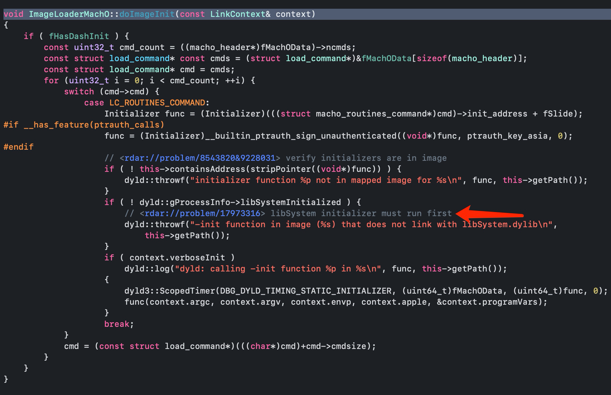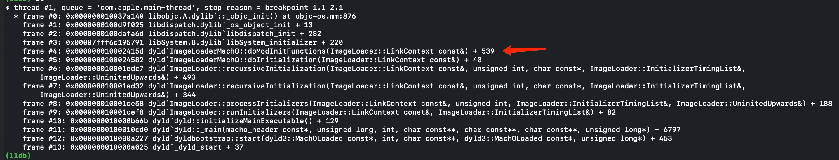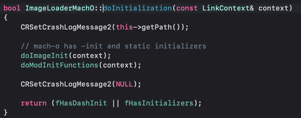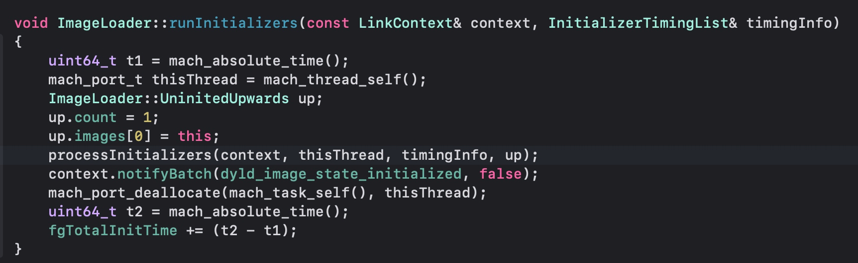 runDyldInitializers(dyldsMachHeader, slide, argc, argv, envp, apple);