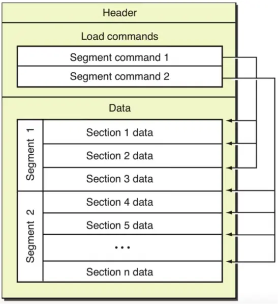 - Header 包含该二进制文件的一般信息,字节顺序、架构类型、加载指令的数量等。