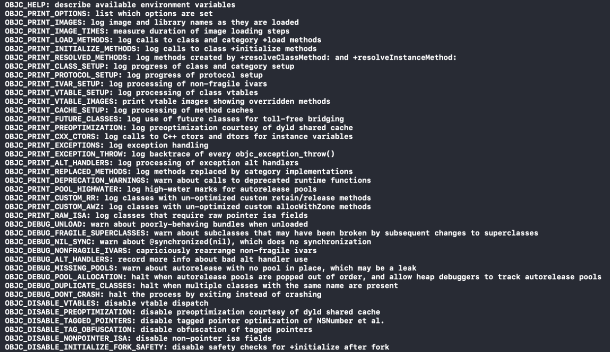 _objc_inform("OBJC_PRINT_OPTIONS: list which options are set");