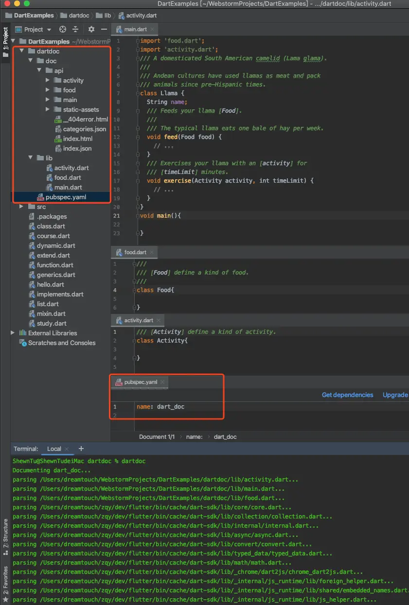 - 我们可以解析Dart代码并生成HTML文档,使用Dart SDK命令dartdoc。