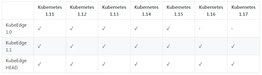 由于边缘端只关心Pod、ConfigMap、Secret、Service、Endpoint这几个核心API对象,K8s中这几个API对象保持不变,那么就可以保持兼容,兼容性表报如下图。