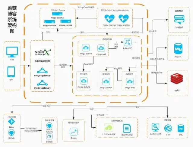项目简介:基于 Spring+SpringMVC+Mybatis 架构的开源博客:博客管理、图表数据、日志分析、访问记录、图库管理、资源管理、友链通知等。良好的页面预加载,无限滚动加载,文章置顶,博主推荐等。提供 用户端+管理端 的整套系统源码。响应式设计,支持手机、平板、PC,都有良好的视觉效果!包含了日常需要的所有功能。5、项目名称:基于微服务架构的前后端分离博客系统 蘑菇博客