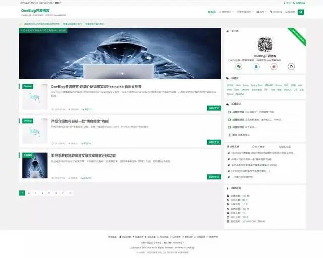 项目简介:OneBlog 一个简洁美观、功能强大并且自适应的Java博客。使用springboot开发,前端使用Bootstrap。支持移动端自适应,配有完备的前台和后台管理功能。功能简介: