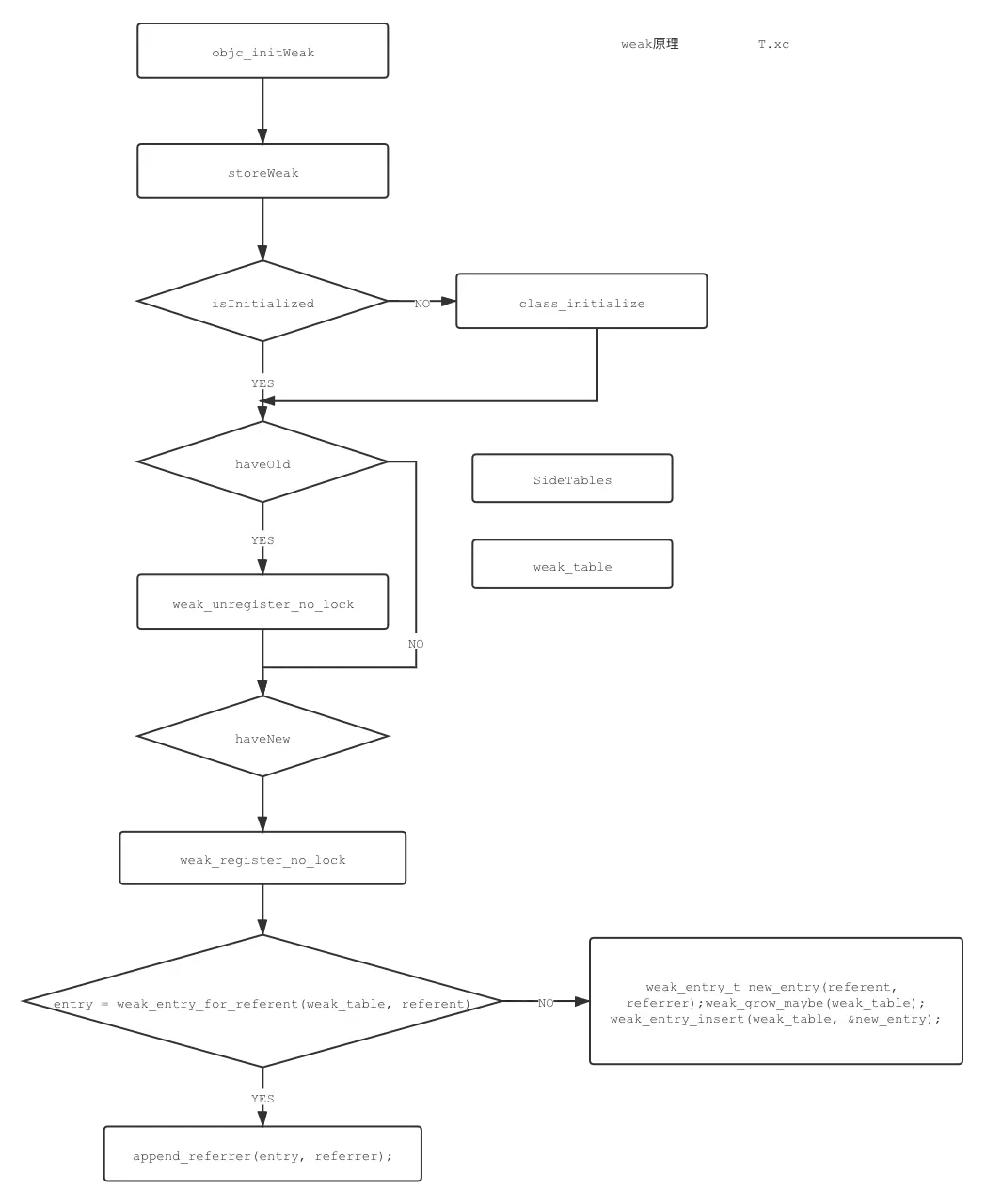 HaveOld:weak指针之前是否指向了一个弱引用HaveNew:weak指针是否指向一个新的弱引用