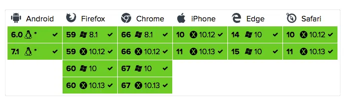 支持程度:移动端:支持ios,但是没有定期测试。 0.47 支持安卓on 谷歌,但是0.50+ 当前不支持, 支持ios pc端最新的谷歌,Edge,火狐,safari 进行了测试,在IE中不行