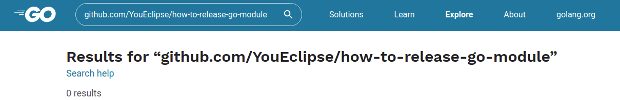 我们把代码push 到远端分支,看起来好像第一个版本就发布完毕了。我们打开pkg.go.dev搜索一下github.com/YouEclipse/how-to-release-go-module这个包,却返回未找到这个包。这是为何?