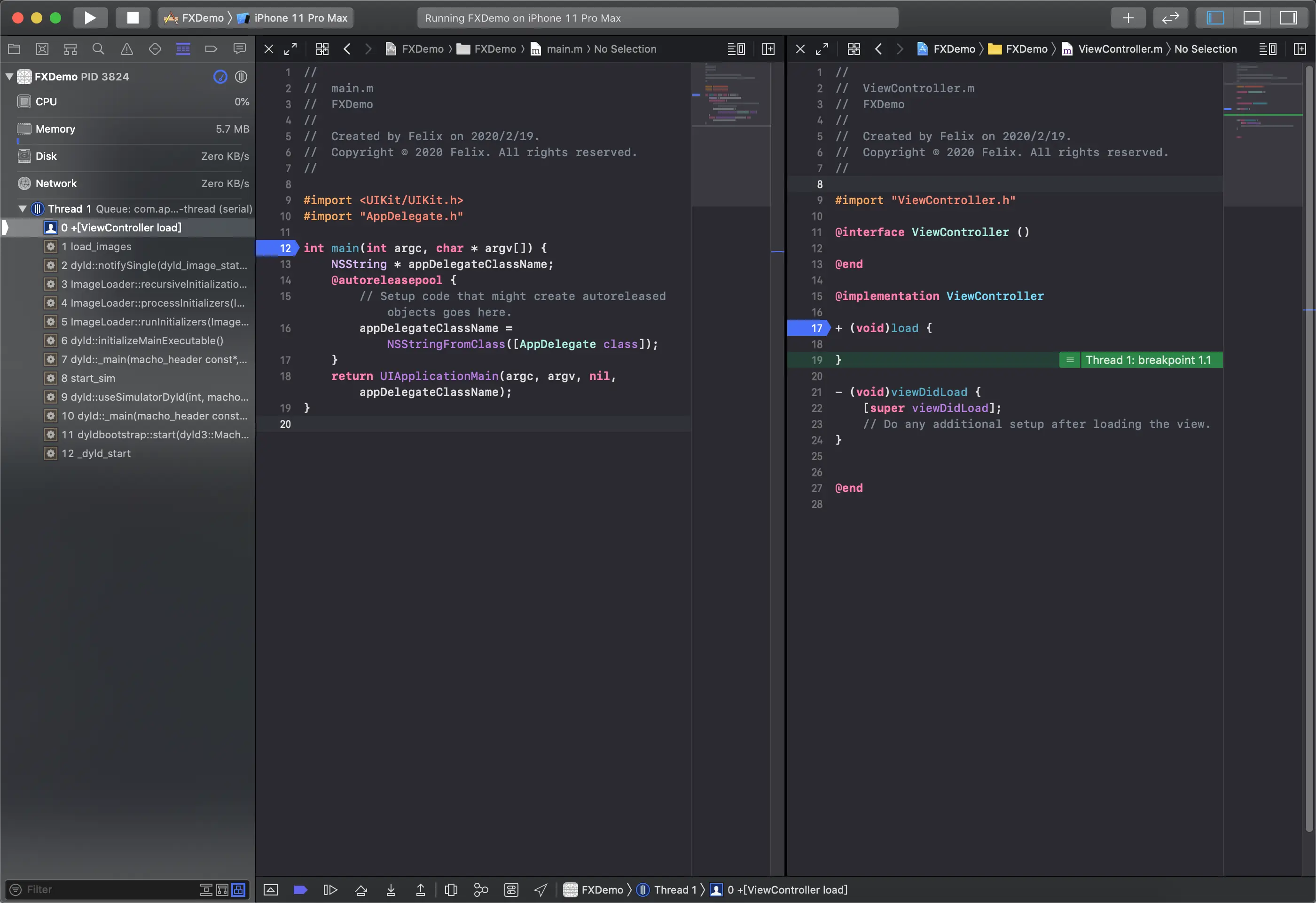 新建空工程,写下load方法,并在main方法和load方法分别下断点