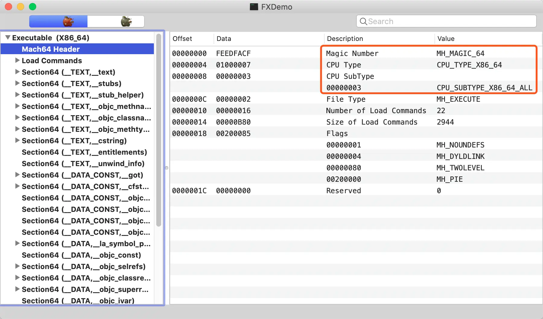 //保存传入的可执行文件的头部(是一个struct macho_header结构体),后面根据头部访问信息