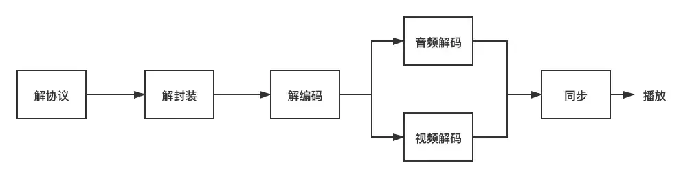 一般情况下,视频流从加载都准备播放是需要经过解协议、解封装、解编码这样的过程,其中协议指的就是流媒体协议;封装是的是视频的封装格式;编码又分为视频编码和音频编码。