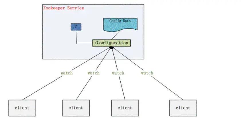 假设我们的程序是分布式部署在多台机器上,如果我们要改变程序的配置文件,需要逐台机器去修改,非常麻烦,现在把这些配置全部放到zookeeper上去,保存在 zookeeper 的某个目录节点中,然后所有相关应用程序对这个目录节点进行监听,一旦配置信息发生变化,每个应用程序就会收到 zookeeper 的通知,然后从 zookeeper 获取新的配置信息应用到系统中。