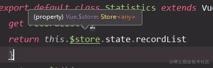 \color{ #ff0000}{注:}由于vuex在声明$store的时候默认将它的类型定义成any导致在之后的引用此数据对象的属性时都无法得到正确的类型所以每次都要手动断言其类型()