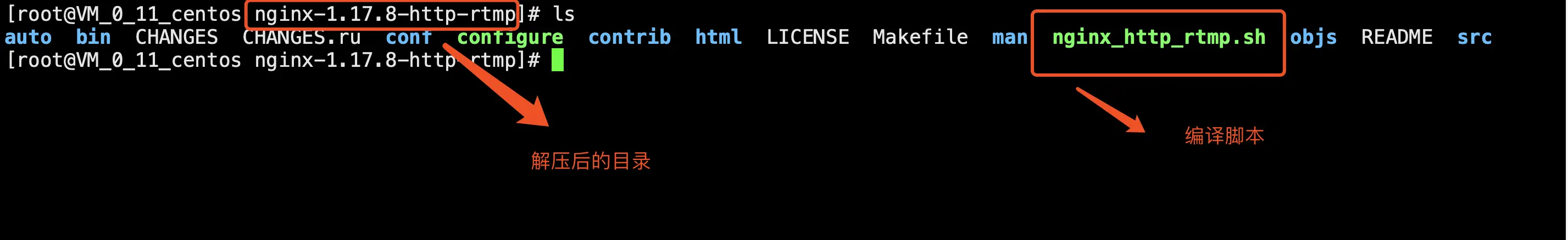 在当前解压 nginx 目录中创建编译 nginx 和 http-flv 脚本