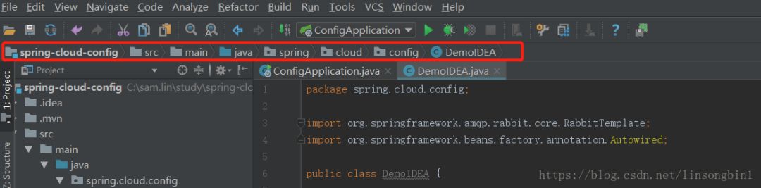 上面图中的DemoIDEA里,你如何知道它是在spring-cloud-config工程里的哪个位置呢?