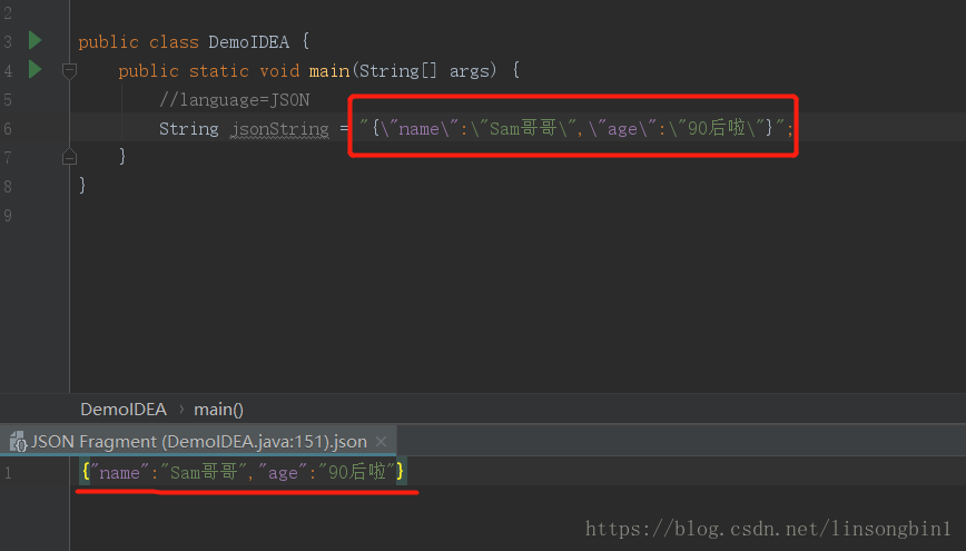 如果你使用IDEA在编写JSON字符串的时候,然后要一个一个\去转义双引号的话,就实在太不应该了,又烦又容易出错。在IDEA可以使用Inject language帮我们自动转义双引号。
