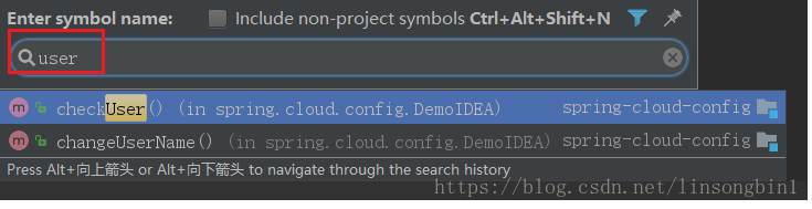 你想找到checkUser方法。直接输入user即可。