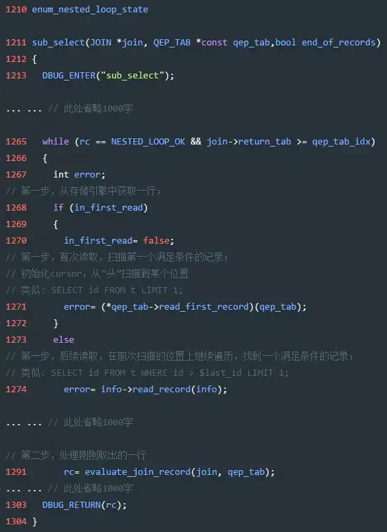 上层的流程与代码是比较简单的,集中在 sub_select 函数中,其中 2 类函数分别对应于前面”执行框架”部分所述的 2 个步骤 – 读取、计数。先给出结论如下:
