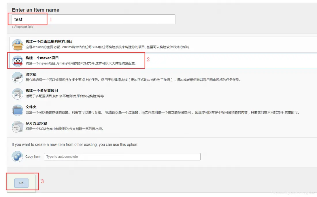 如果你没有选项"构建一个maven项目",说明jenkins还没有安装maven插件。