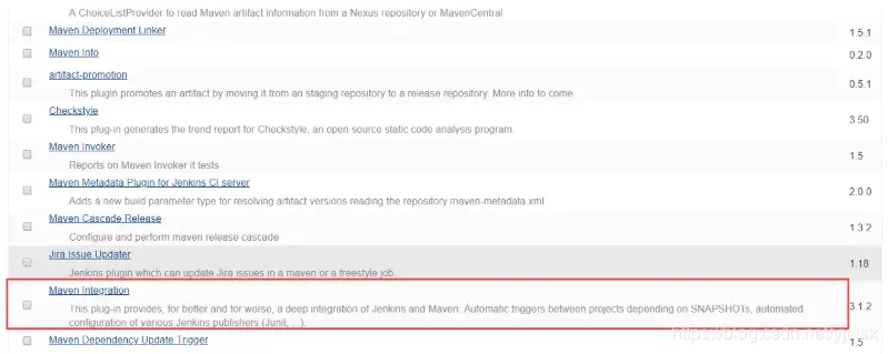 点击 “可选插件”(Available),找到如下maven插件,安装重启jenkins即可。