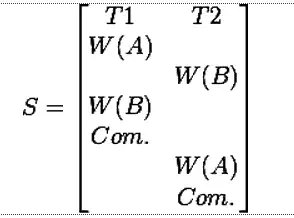 写写冲突Write-Write Conflict, 也称为覆盖未提交数据overwriting uncommitted data,它是发生在当有一个丢失修改情况下,试图使这种场景串行只能是下面两者之一:要么是事务T1版本,要么是事务T2的版本: