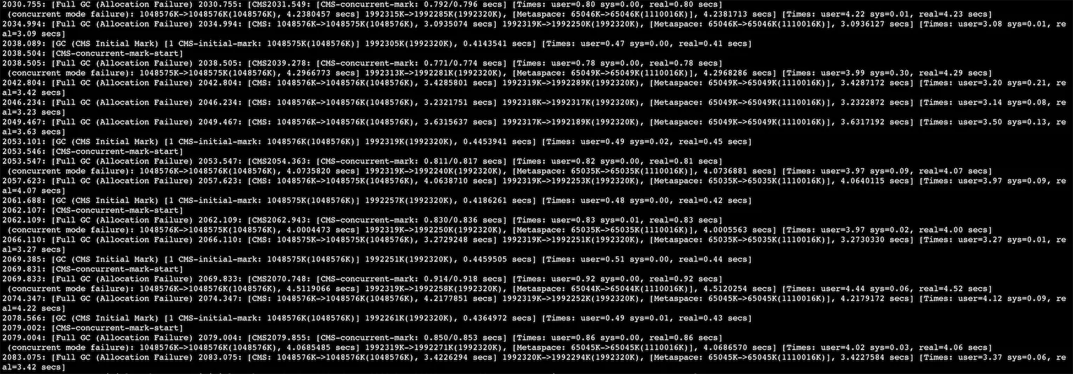 然后去翻看了GC日志,发现了很多次GC失败的信息: