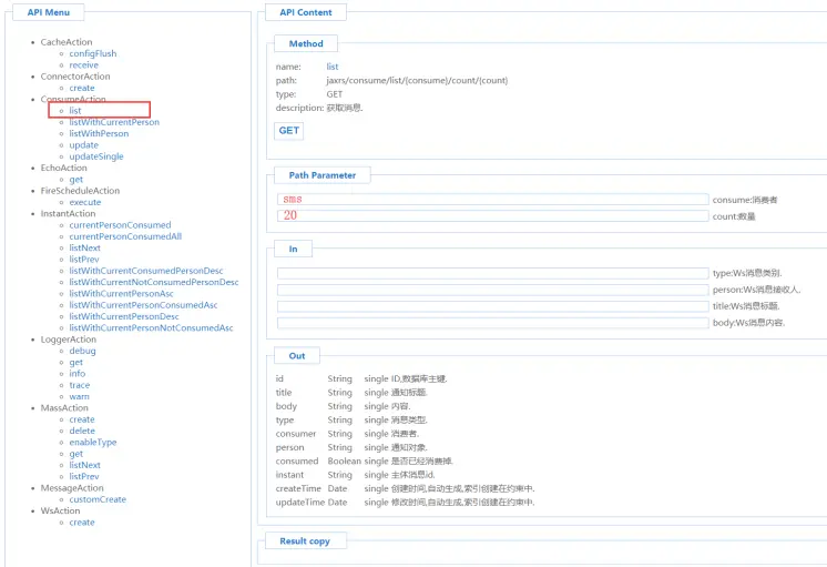 服务地址示例: http://o2server_host:20020/x_message_assemble_communicate/jaxrs/consume/list/sms/count/10 返回数据格式: